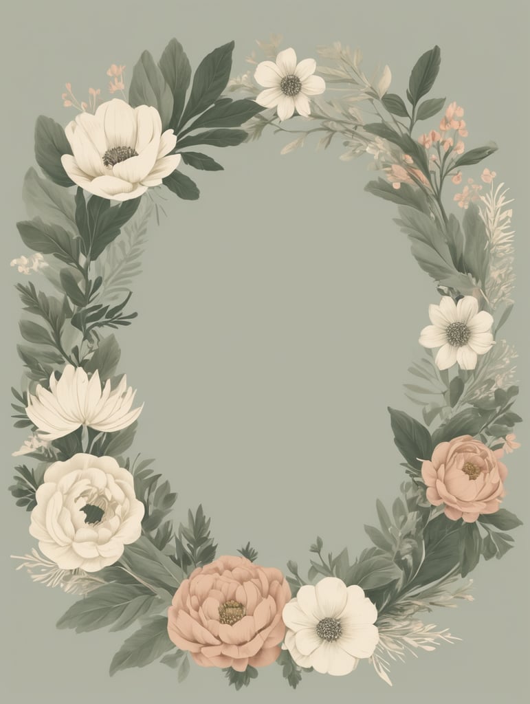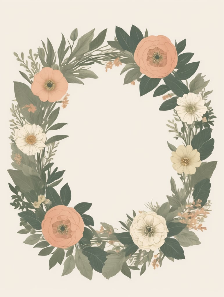 - vintage botanical rounded frame wreath illustration flower circle frame wedding day floral design nature inspired vintage aesthetics botanical artwork romantic decoration