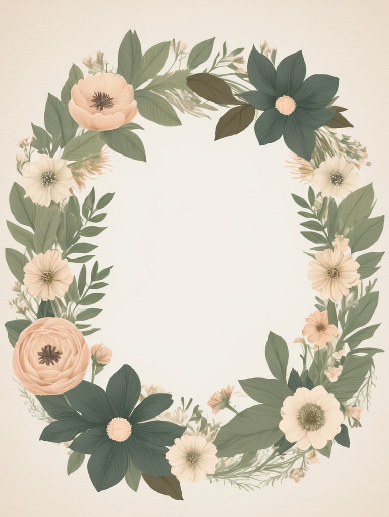 - vintage illustration botanical art rounded frame wreath design flower circle wedding day floral illustration vintage decor nature inspired artistic composition