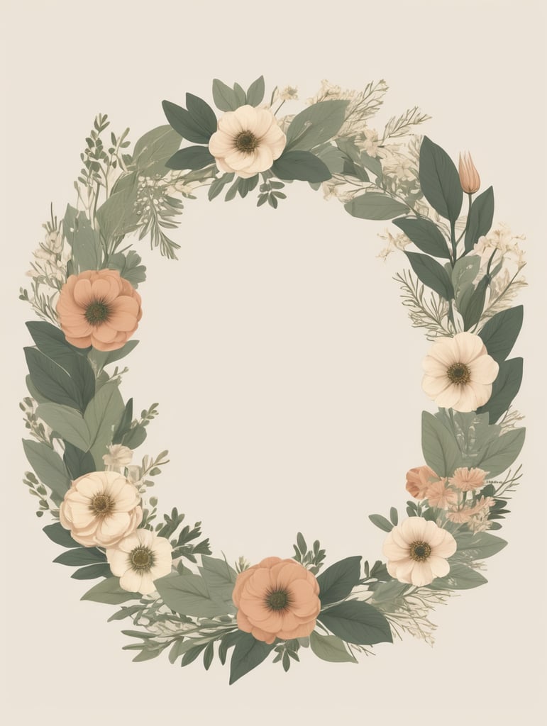 Timeless Floral Wreath Illustration: Nuptial Elegance