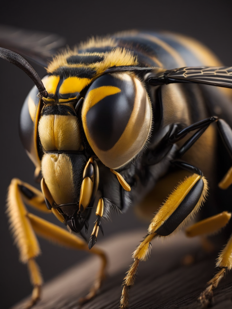 wasp macro photography, close-up, high-quality details, deep focus, professional shot