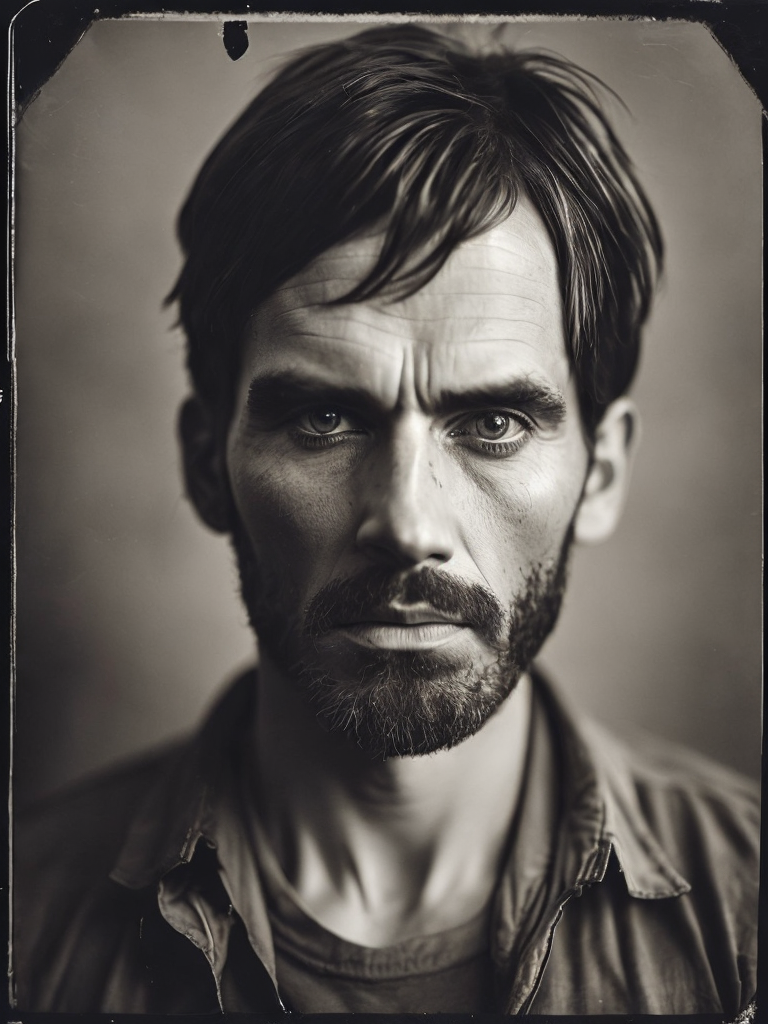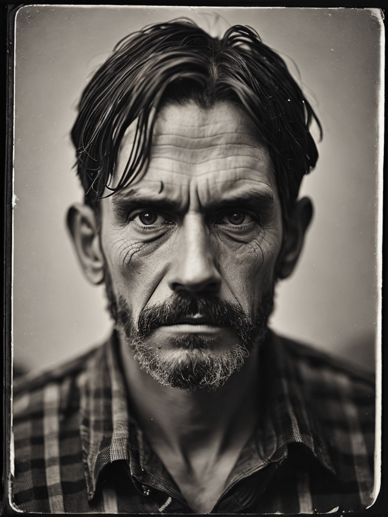 a wet plate photograph of a scary farmer with dark bob haircut, white eye, neutral emotions on his facehttps://lumenor.ai/terms-of-service/https://lumenor.ai/ai-generated-images-gallery/hmlO22llof/lumenor AIlumenor AI