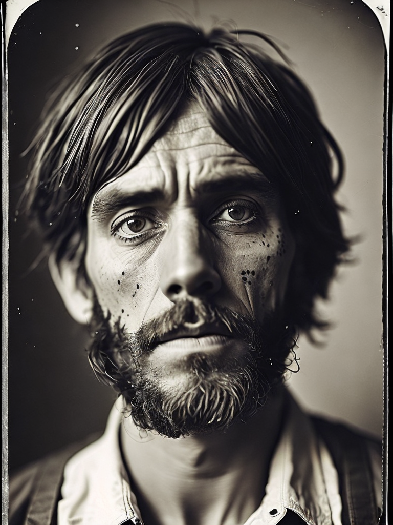 a wet plate photograph of a scary farmer with dark bob haircut, white eye, neutral emotions on his facehttps://lumenor.ai/terms-of-service/https://lumenor.ai/ai-generated-images-gallery/hmlOw3nyl1/lumenor AIlumenor AI