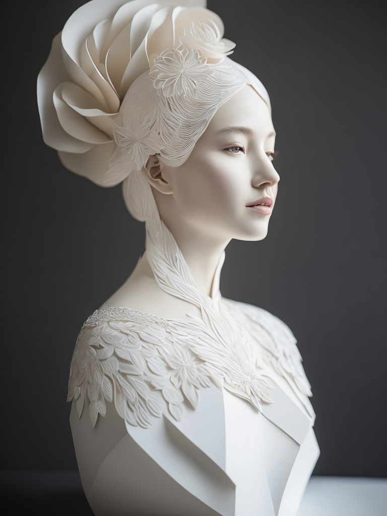 - white cut paper sculpture paper art sculpture details artistic craftsmanship feminine art handmade sculpture intricate design textured artwork abstract paper sculpture creative artistry