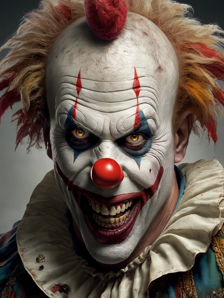 - zombie clown portrait white background one head scientific illustration vintage encyclopedia horror spooky creepy